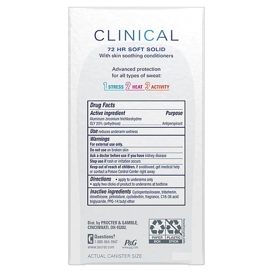 Secret Clinical Strength Invisible Solid Antiperspirant and Deodorant - Completely Clean, 1.6 oz.