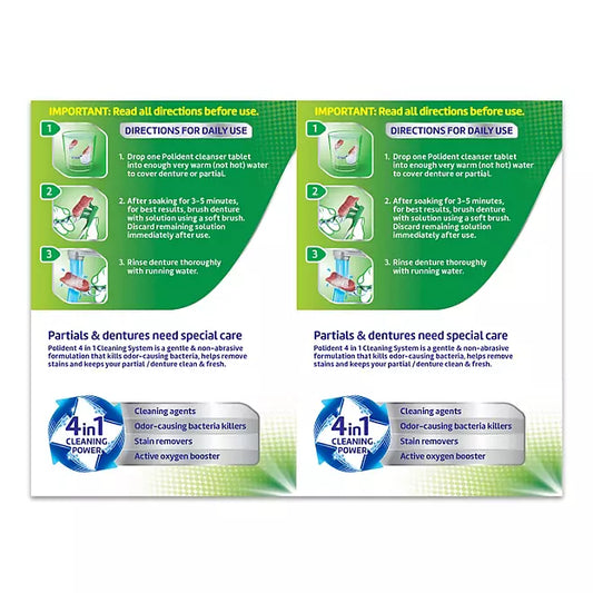 Polident 3 Minute, Antibacterial Denture Cleanser 120 ea , Pack of 2