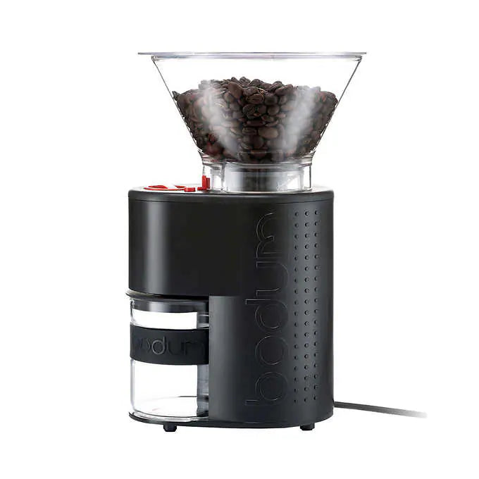 - The Bistro Burr Grinder consistently crushes beans between stainless steel conical burrs. This process also preserves the bean’s intrinsic flavor and aroma better than a blade grinder.