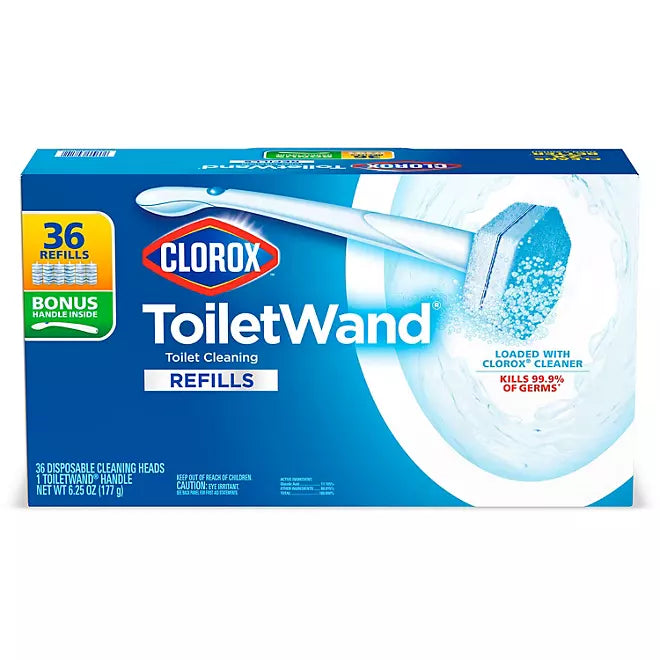 This toiletwand with Clorox is your all-in-one cleaning solution. So no need to carry around a bottle of cleaner and germ-ridden toilet brush! Its hexagon shape even cleans hard-to-reach areas under the bowl rim and drain with ease. Included in this pack are 36 refill heads plus 1 toiletwand handle. The long handle helps you clean your toilet from a distance and the disposable refill pads are preloaded with Clorox Toilet cleaner to give you a clean start every time. Tough scrubbing pads power through rust, calcium, and lime stains.