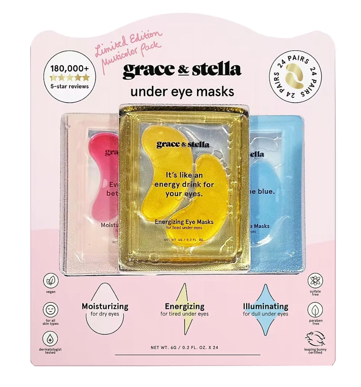 - Includes all three colors of the TikTok-viral Grace & Stella eye masks, with eight pairs of each color