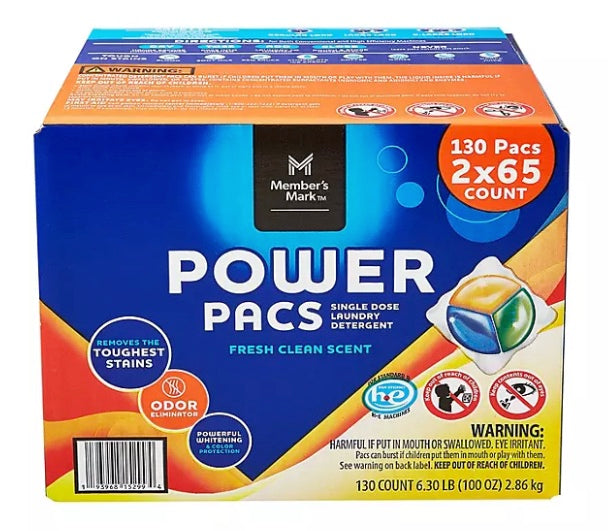 Member's Mark Laundry Detergent Power Pacs, Fresh Clean Scent , 130 count