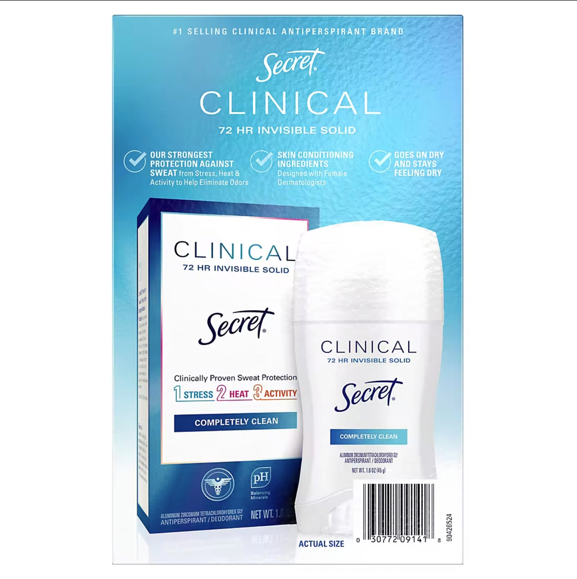 Secret Clinical Strength Invisible Solid Antiperspirant and Deodorant - Completely Clean, 1.6 oz.