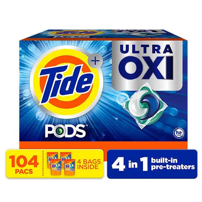 Tide PODS + Ultra Oxi Liquid Detergent Pacs , 104 pacs