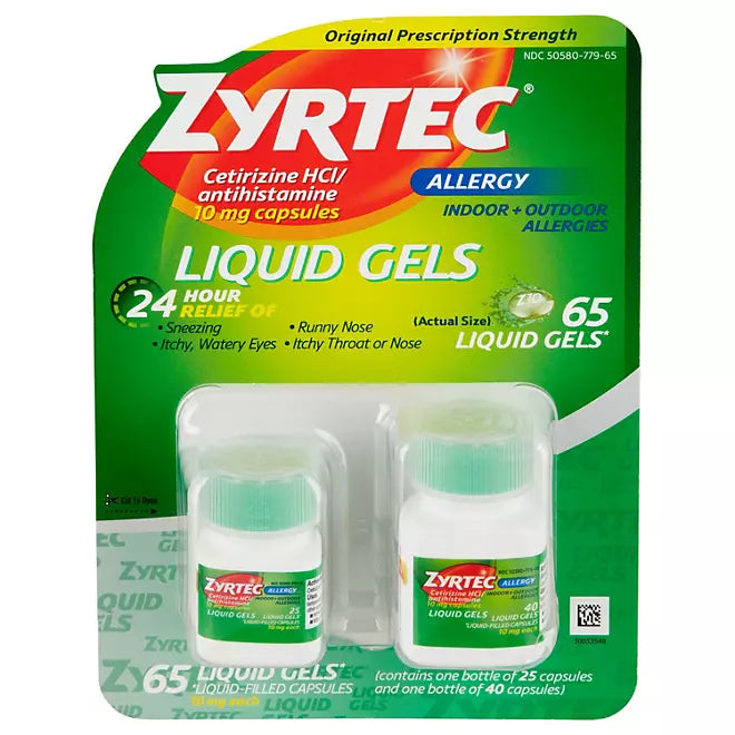 Zyrtec 24 Hour Allergy Relief Liquid Gels , 65 count